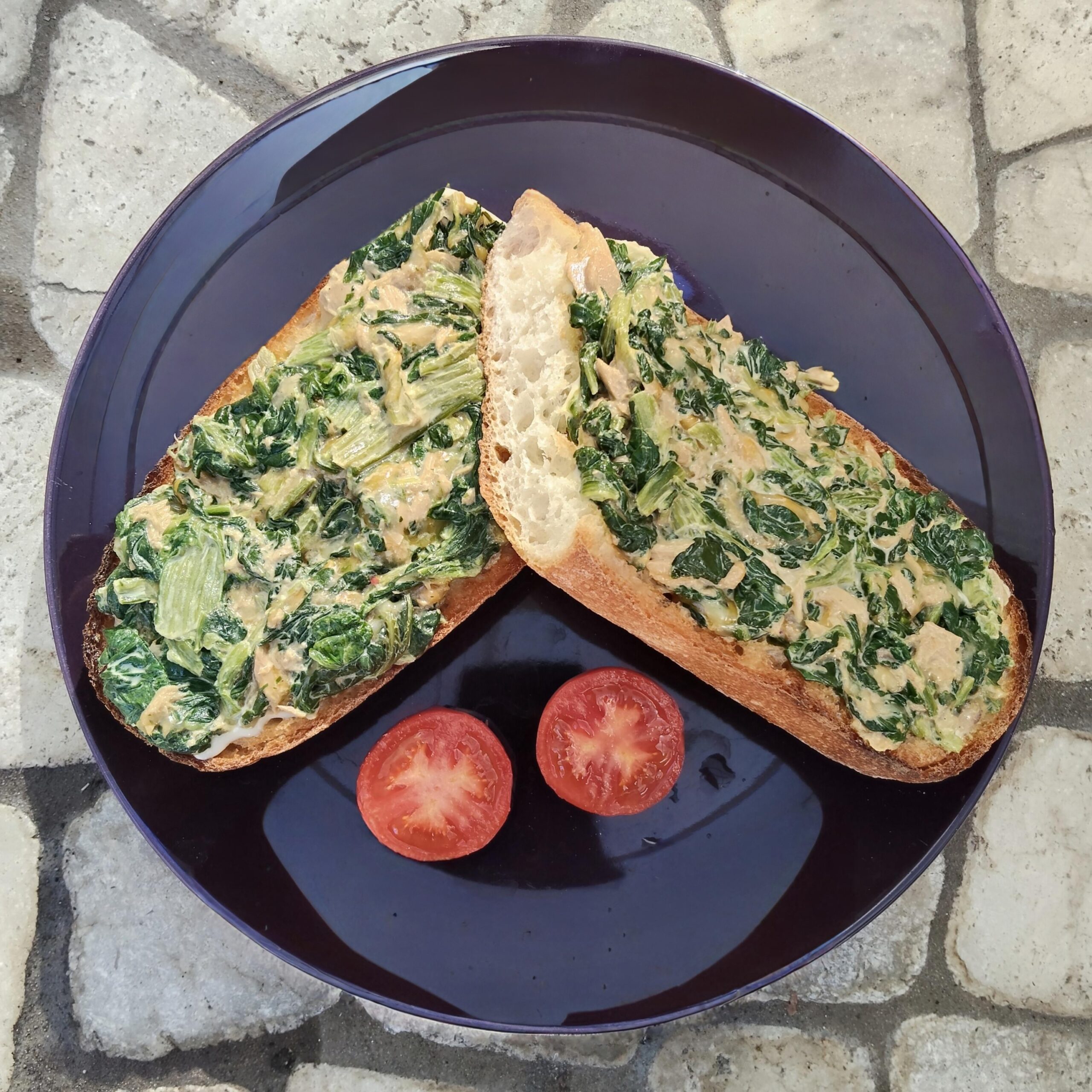 冷凍ほうれん草を使えば、手軽に作れるオープンサンド。
